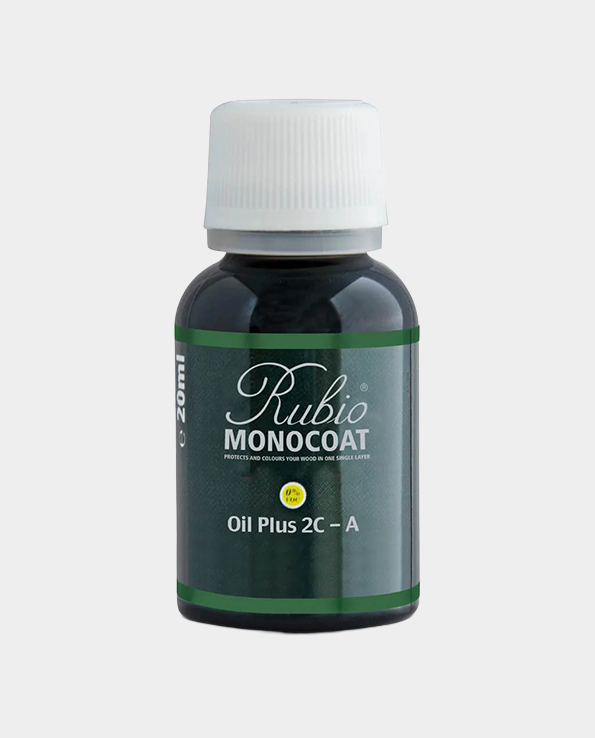RMC Oil Plus 2C (A) 20ml Pure Renksiz Hızlandırıcısız iç mekân ahşap yüzeyler üzerinde kullanılan RMC Oil Plus (A) Hızlandırıcısız yağdır. Hızlı kuruma gerektiren iç mekân uygulamaları için çok uygundur. Rubio Monocoat Oil Plus 2C tek bir kat halinde uygulanır.