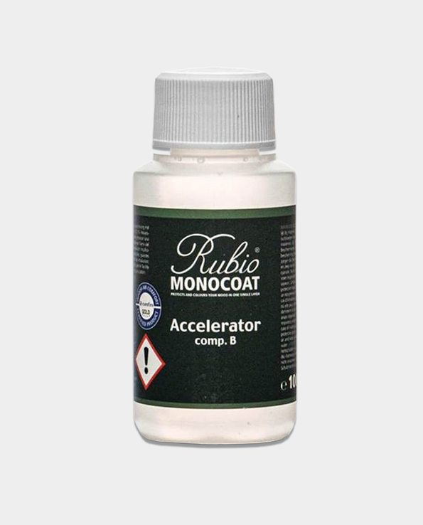 Rubio Monocoat Oil Plus iç mekân ahşap yüzeyler üzerinde kullanılan RMC Accelerator (B) bileşeni bir hızlandırıcı.